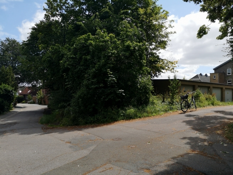 existiert dort ein 8 mal 13 Meter großes eingezäuntes Eckgrundstück